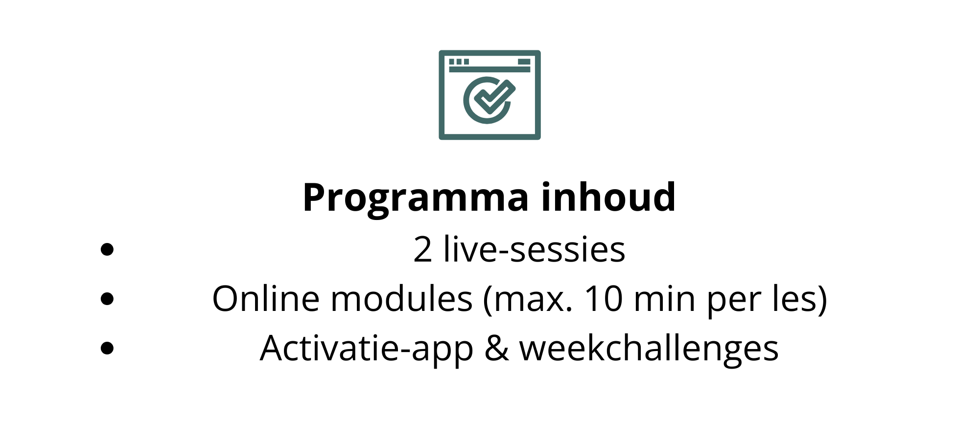 Live-sessies, weekchallenges en onze app geven je team direct energie.
